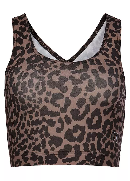 Sporty crop top in an all-over leopard print with a plunging scoop neckline and elasticated waistband. Figure-hugging fit.