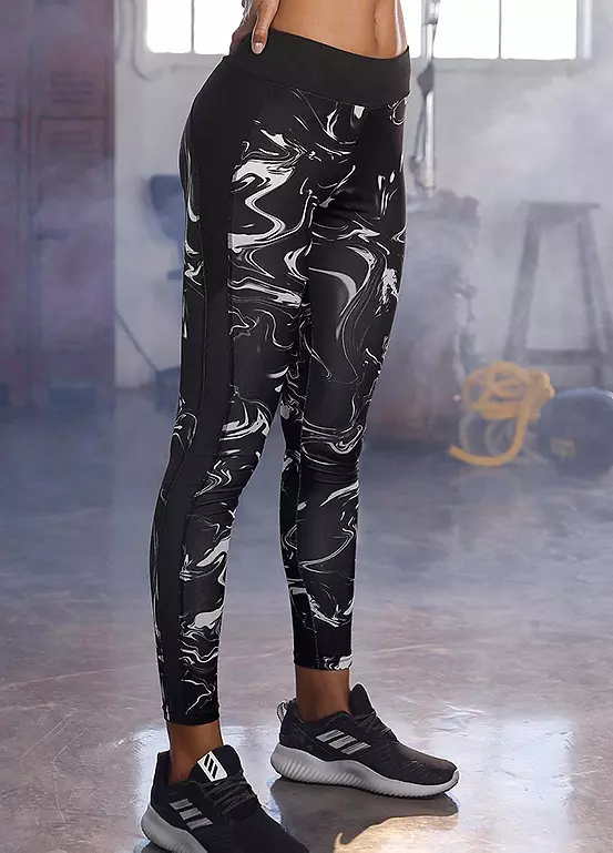 Trendy leggings in a stylish all over print with a soft wide trim, mesh panels and a wide waistband designed with a logo print. These sporty leggings are ideal for the gym, yoga and many other activities.