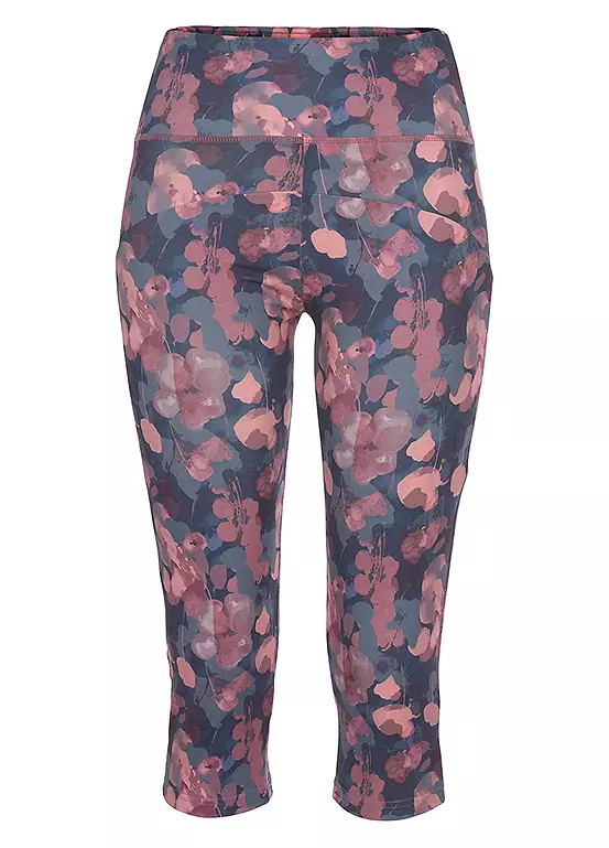 Stylish performance capri leggings in a printed design. They feature a wide, elasticated waistband for added comfort, as well as decorative bands on the side. Ideal for training and working out. Wide, elastic waistband. Braided details along the legs.