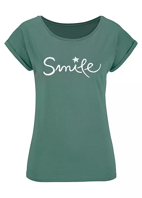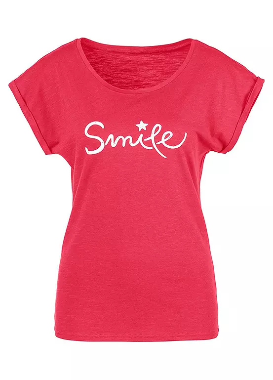 You’ll be smiling all day long in this comfy, casual t-shirt! Comes with short turn-up sleeves and a fun print on the front. Length approx. 64 cm (25¼ in)