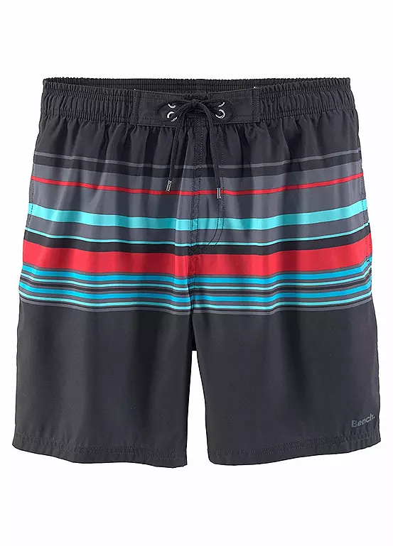 On-trend stripe design swimming shorts, crafted from a soft microfibre fabric with an elasticated waistband with outer drawstring. Featuring slit pockets at the side, with inner briefs and a smaller inner pocket ideal for small valuables.