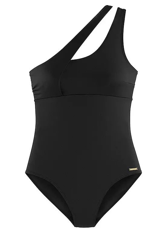 Check out the trendy one-shoulder swimsuit with removable soft cups and adjustable straps for individual comfort. Adjustable straps. Removable soft cups.