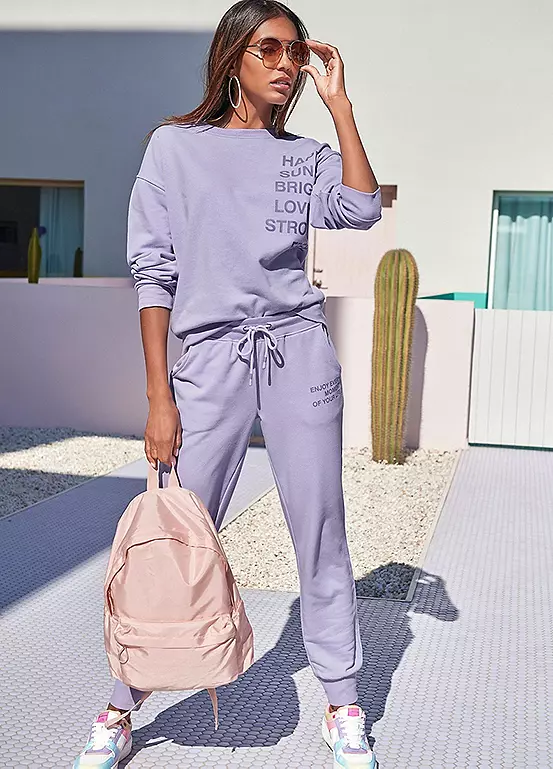 A long sleeve sweatshirt in a relaxed fit with dropped shoulders and a stylish slogan print. Finished in a soft cotton blend with ribbed cuffs, this piece is perfect for both lounge wear and a casual weekend look teamed with jeans or leggings.