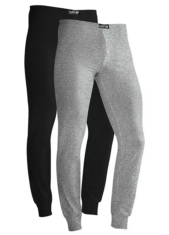 Pack of 2 long johns ideal for the colder months. They are buttoned at the front, with a ribbed leg cuff. Made from a stretch jersey fabric, that feels great to wear.