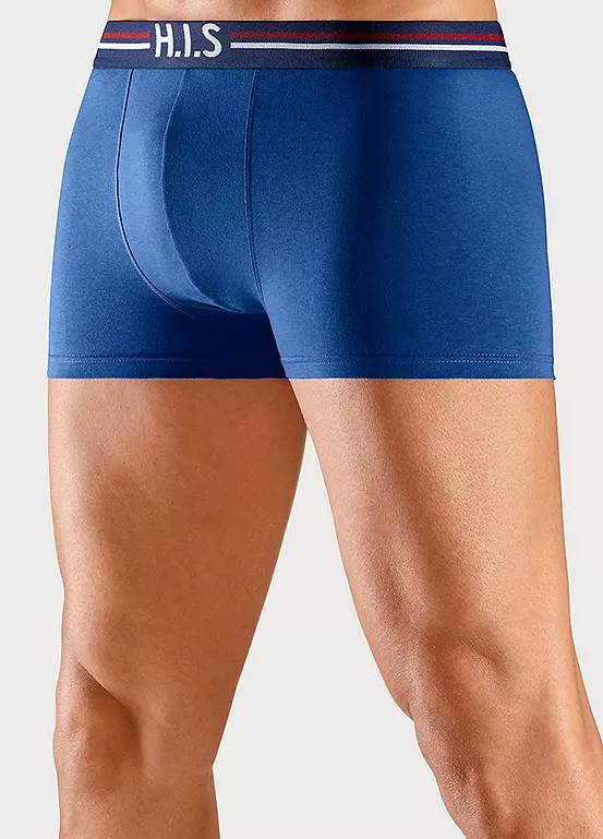5 Pack slim boxers by HIS Regular fit. Soft waistband with branding at front. Made from stretchy cotton for smooth comfort. Pack of 5. Regular fit. Soft waistband. Colour 1: Navy, Colour 2: Blue, Colour 3: Light blue, Colour 4: Black, Colour 5: White.