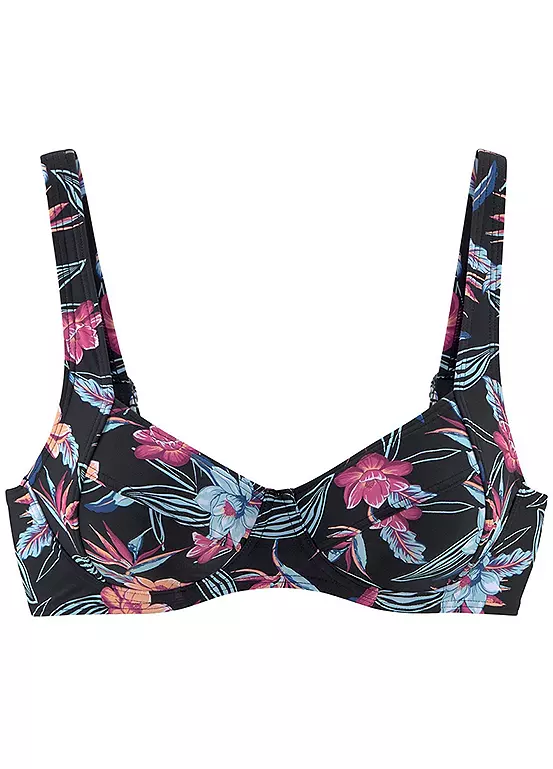 A double pack of underwired bikini tops by KangaROOs with an all-over floral print. Made from recycled material, they feature wide adjustable straps and a back fastening. Floral print. Adjustable straps. Outer: 82% Polyamide, 18% Elastane. Lining: 100% Polyester.