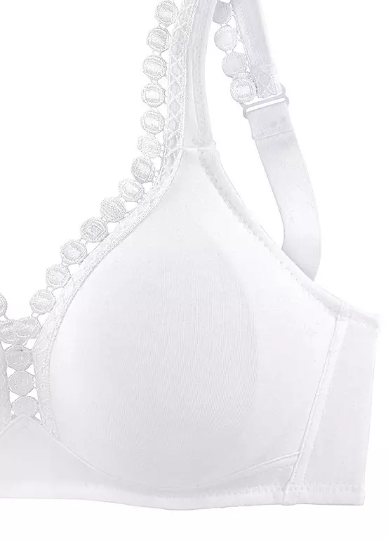 This elegant seamless non-underwired bra has preformed cups with a pretty deco trim on the cleavage. Adjustable straps and back fastening. Perfect for a beautiful sophisticated look.