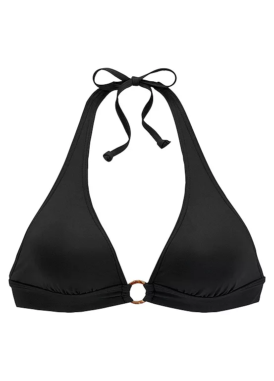 This triangle bikini top is in a classic design which is perfectly finished off by an elegant decorative ring between the cups. You can tie the straps at the neck into a pretty bow and adjust the top individually. The bikini top is not only stylish and practical but also extremely comfortable. This ensured by the soft microfibre quality, which guarantees a great feeling on the skin.