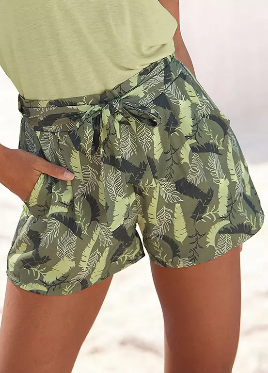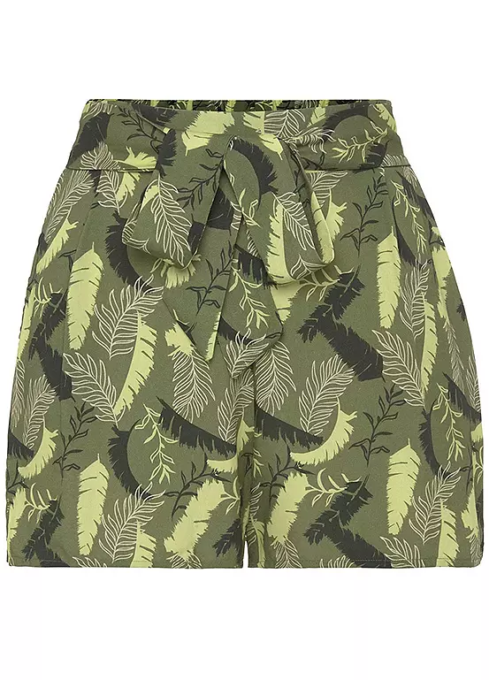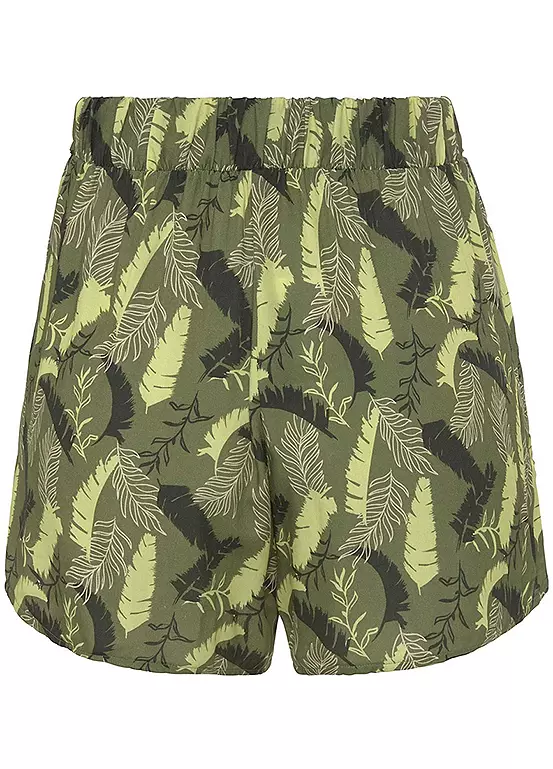 The all-over print on these shorts makes each piece unique and enhances your look in no time at all. The design is also defined by an extra-wide leg, a comfortable drawstring waistband with a tie belt and side pockets. The smooth woven fabric of the shorts also guarantees the best wearing comfort. Tropical print. Wide leg. Machine washable. 100% Viscose.