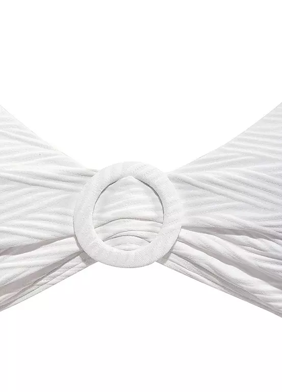 A chic triangle bikini top by Sunseeker. It features a beautiful décolleté, removable soft cups and a decorative ring, plus adjustable straps and back fastening. Ideal for mixing and matching, it’s made from structured soft material. Fashionable decorative ring. Removable soft cups. Hand wash. Outer: 82% Polyamide, 18% Elastane. Lining: 92% Polyester, 8% Elastane.