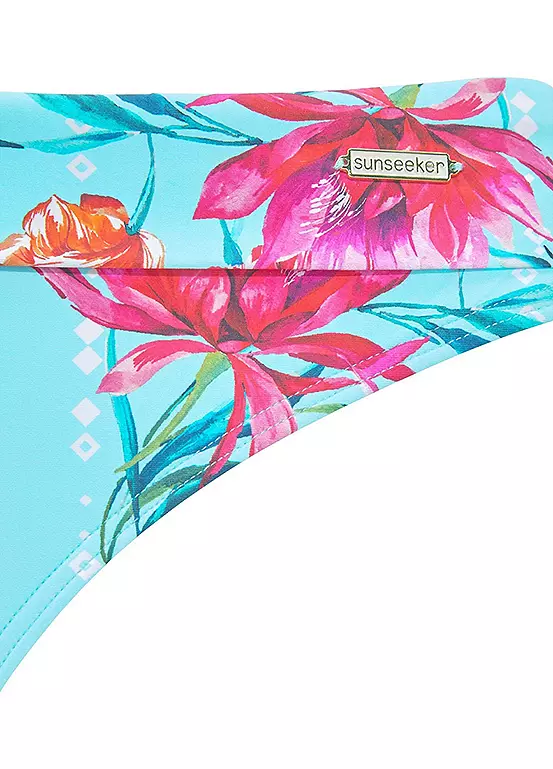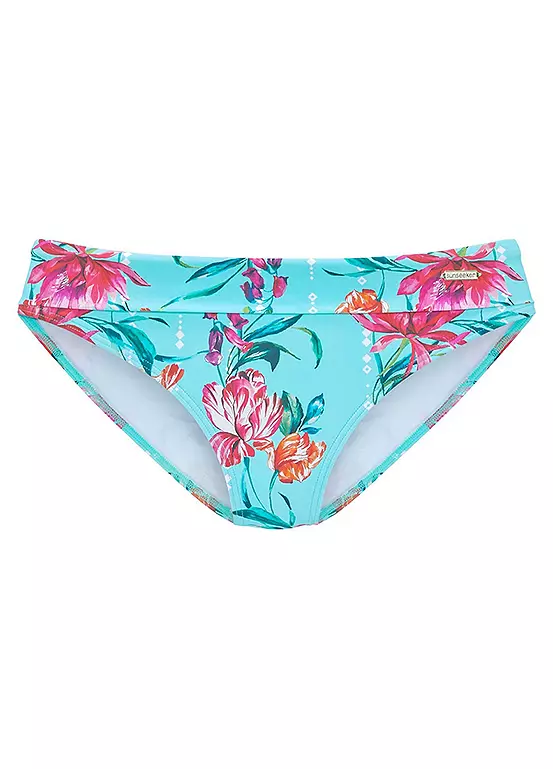 Trendy bikini bottoms that really set the scene for you with their cool floral print and wide turn-down waistband. A small label plate on the side completes the design. If you want the pants to sit lower, simply fold the cuff down. The soft microfiber ensures great wearing comfort. With a modern floral print. Soft microfiber.