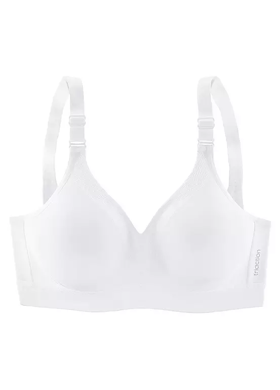 This non-wired sports bra has seamlessly pre-formed cups for extremely good support during your workout. It’s made with a stretch functional material, along with soft extra-wide and adjustable straps, which can also be worn crosswise! Stylish mesh material in a net look runs along the edge of the cup and gives the bra its sporty look.