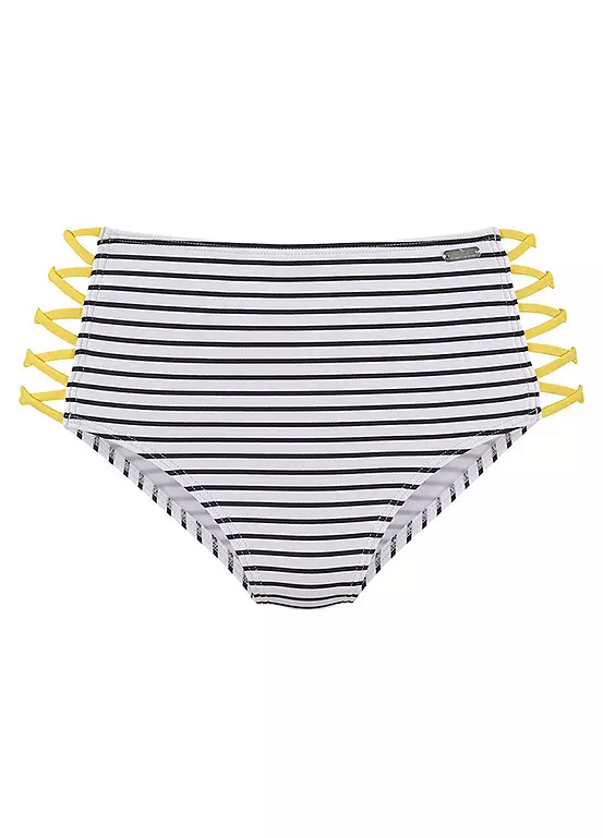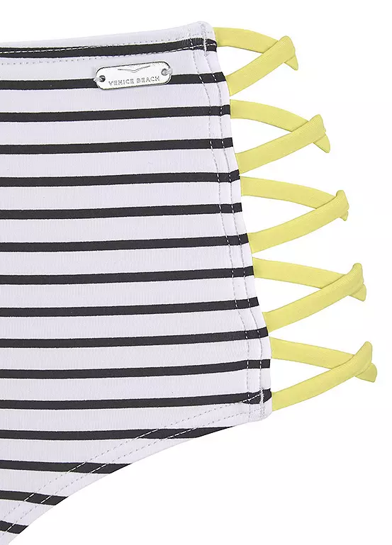 The striped design and the contrasting bands on the sides make the high-waisted bikini bottoms a stylish beachwear highlight. On the other hand, the extra high waist of the bikini bottoms is not only really modern, but it also allows any small love handles to disappear inconspicuously. The soft microfiber is super comfortable to wear in and out of the water. Simply combine it with a bikini top from the series in the best mix-kini style. Side contrast bands. Cut extra high.