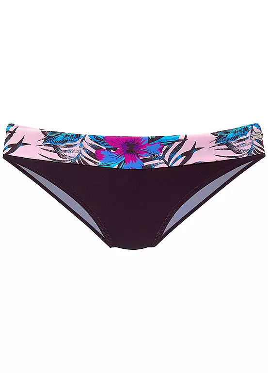 Bikini bottoms with a turn-down waistband and a stylish floral print. Floral print.