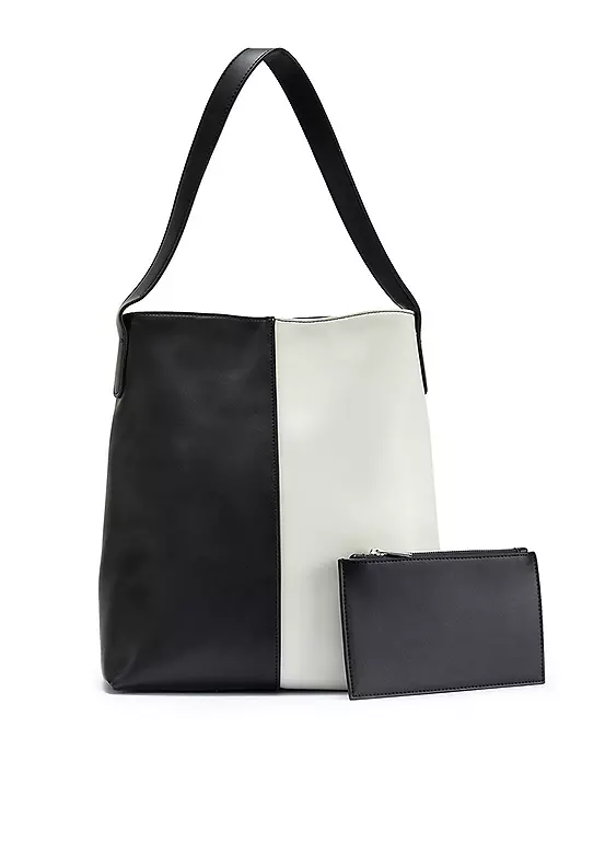 This stylish set of bags features a chic colourblock design main bag with magnetic closure. Perfect for the active shopper on the go, it will keep your items safe and secure. Make a statement and grab yours today! With matching small bag. Dimensions approx. 40H x 30W x 14D cm.