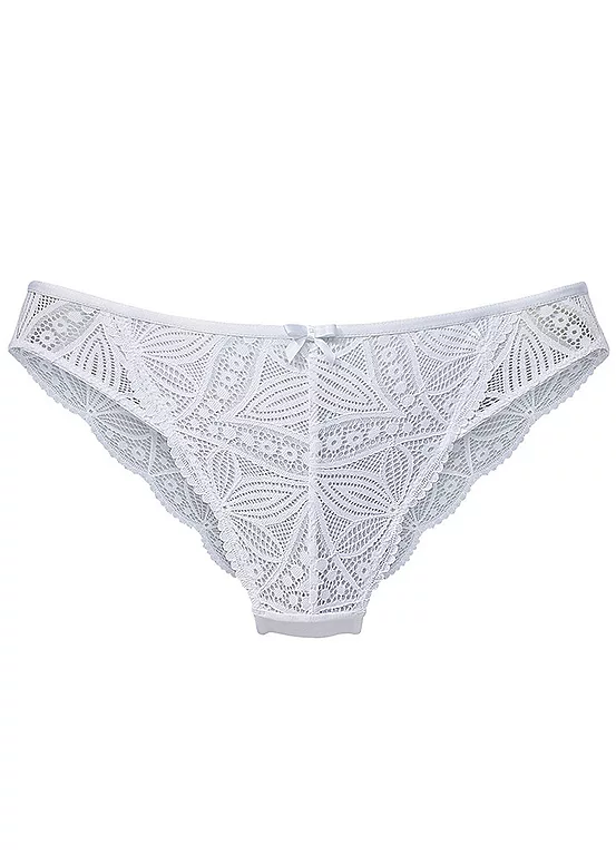 These beautiful briefs made from discreetly transparent lace with stretch content are bordered by a fine decorative border at the waistband and rounded off by a small decorative bow in the middle at the front. The soft mesh material on the leg openings not only looks great, it also makes the briefs incredibly comfortable! Supported by the integrated cotton gusset, wearing comfort is optimally ensured! Discreetly transparent lace with stretch content. Decorative border at the waistband.