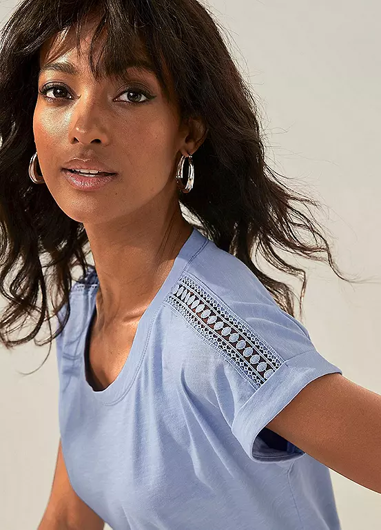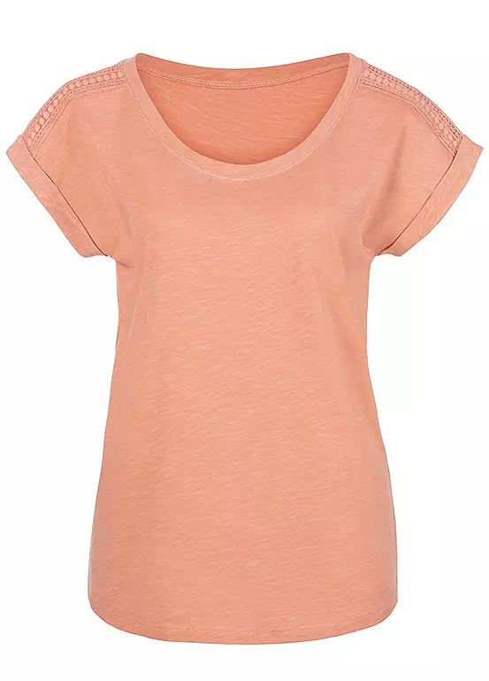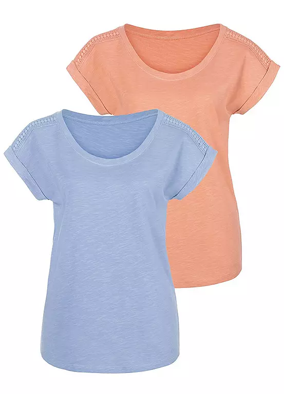 Fashionable t-shirt in a 2-pack by Vivance. With a delicate crochet insert on the shoulder. Capped sleeves with turned-up hem. Soft, slightly structured cotton quality. Pack of 2. Capped sleeves. 100% Cotton.