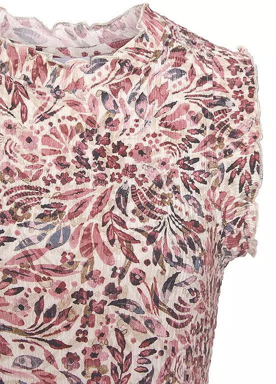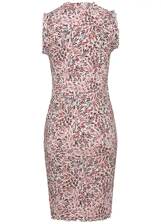 This stylish dress by Vivance features a high neckline, ruffled edges and baby lock hems. It’s in a close fit and crafted from woven fabric in a crepe look. High neckline. With ruffle edges. Baby lock hems.