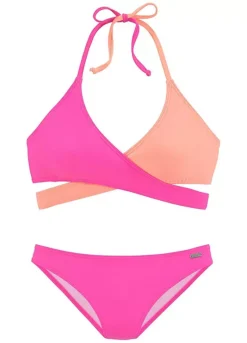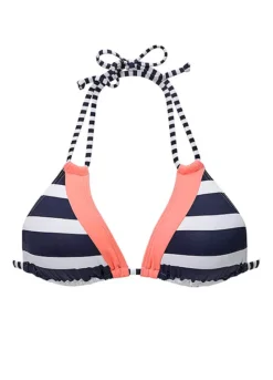 This triangle bikini top features fashionable colours and a floral print. The removable cups allow you to give your bust nice curves and conjure up a great décolleté. The straps can be knotted at the neck and you can also adjust the fit in the back with tie straps. Play with your individual beach look and combine this triangle bikini top with matching bikini bottoms. Each piece is unique. Removable cups.